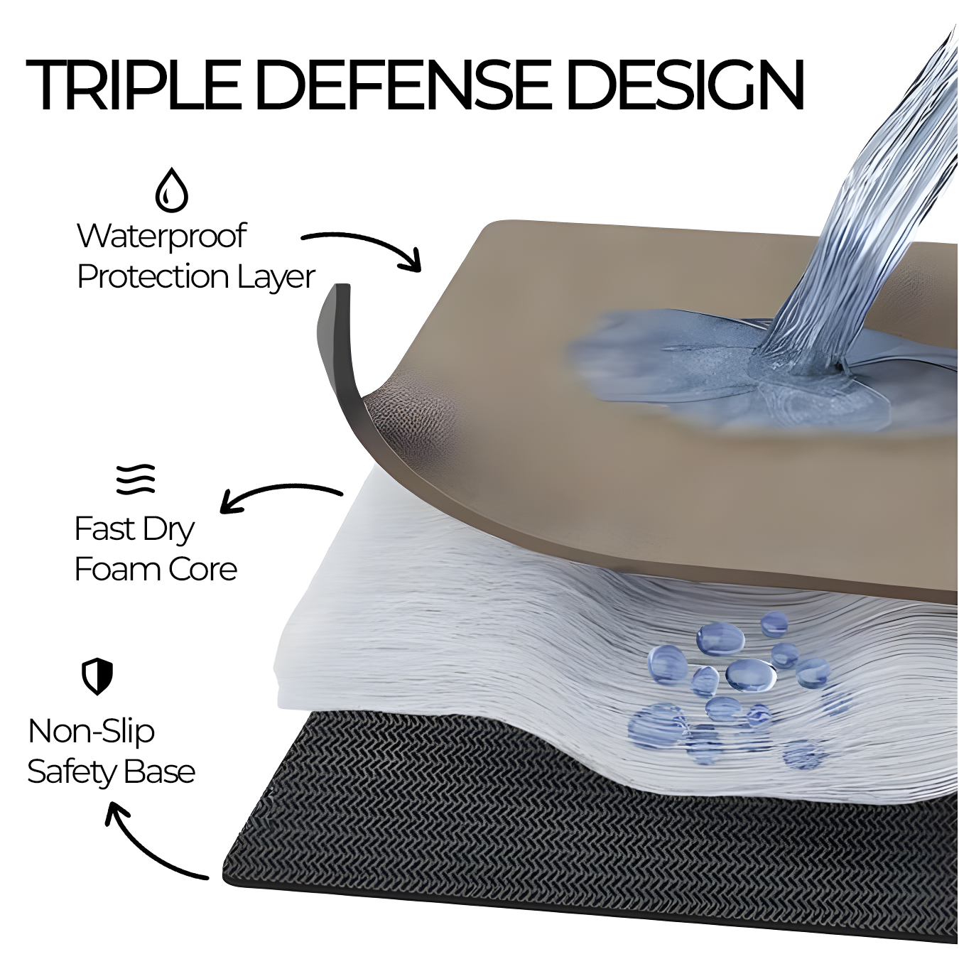 It absorbs water instantly and doesn't stay soggy like traditional fabric mats.
