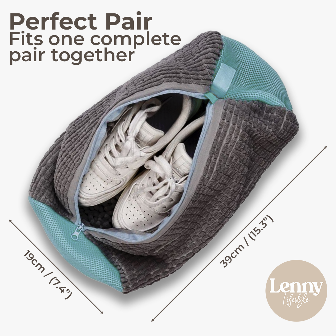 Pop your shoes in, zip closed, and run a delicate cycle with your regular detergent.